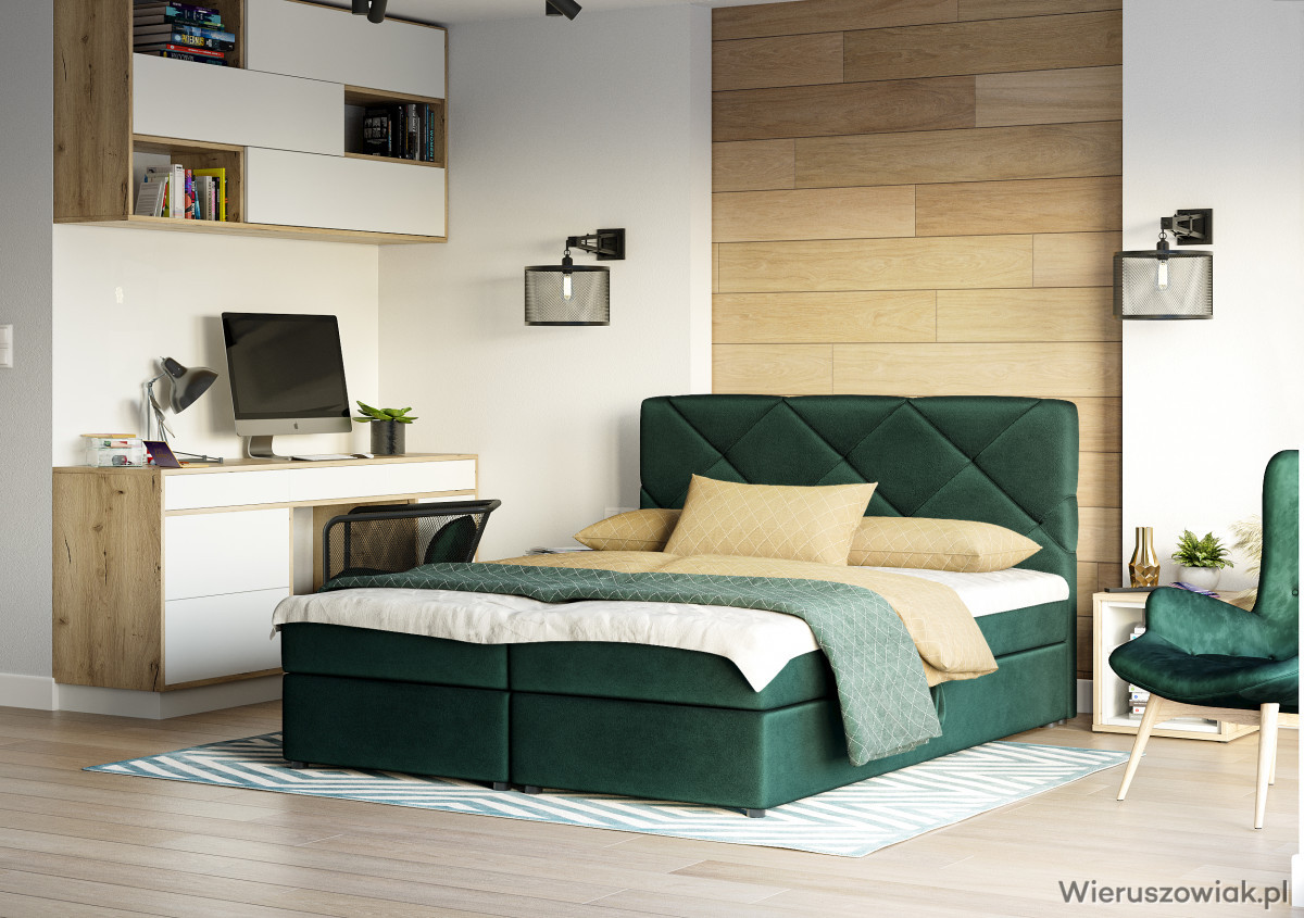 Łóżko kontynentalne KROSS to elegancka i funkcjonalna opcja, łącząca nowoczesny design z praktycznością. Wyposażone w materac typu BONELL, które zapewnia solidne wsparcie i komfort snu dzięki sprężynom bonellowym, jest doskonałym rozwiązaniem dla osób szukających wygodnego odpoczynku. Materac idealnie dopasowuje się do kształtu ciała, gwarantując równomierne rozłożenie ciężaru, co wpływa na jakość snu.