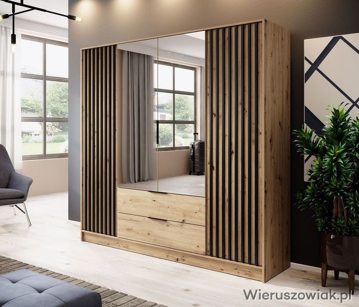 Lamele stały się hitem w aranżacji przestrzeni, dlatego w szafie DALIA połączyliśmy funkcjonalność z nowoczesnym designem. Model ten wyposażony jest w klasyczne uchylne drzwi, pojemne szuflady oraz eleganckie pionowe listwy z płyty MDF o grubości 18 mm.