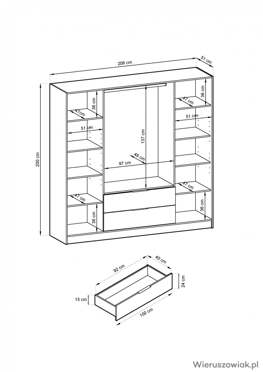 Wymiary szafy: