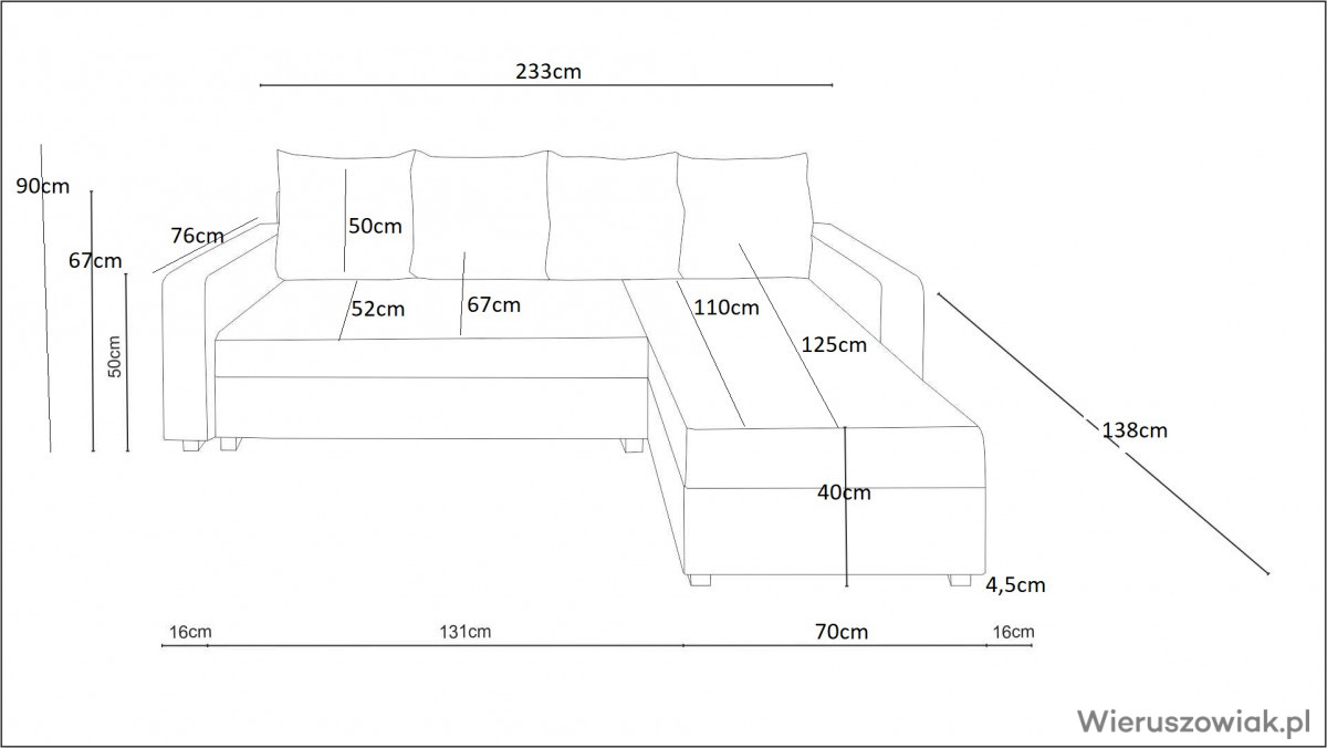 Dzięki funkcji spania, narożnik świetnie sprawdzi się jako dodatkowe miejsce noclegowe dla gości. Wbudowany pojemnik na pościel umożliwia praktyczne przechowywanie, pomagając utrzymać porządek w pomieszczeniu.