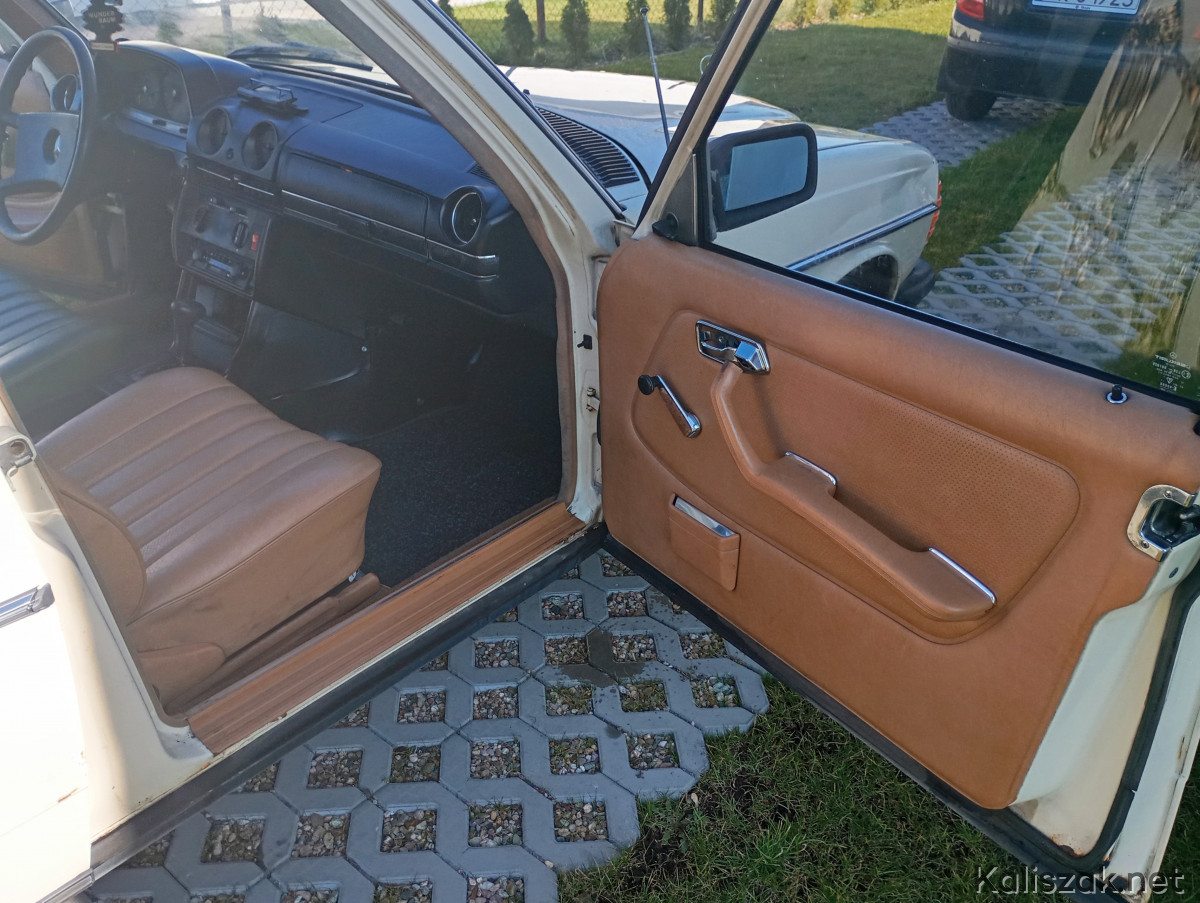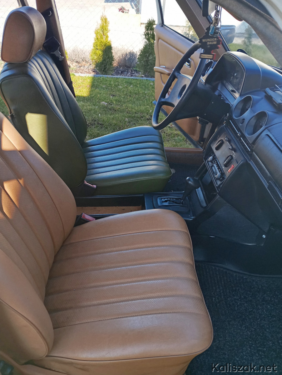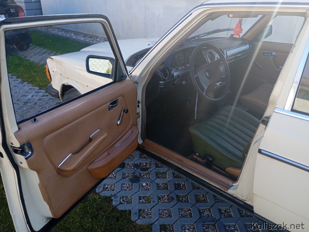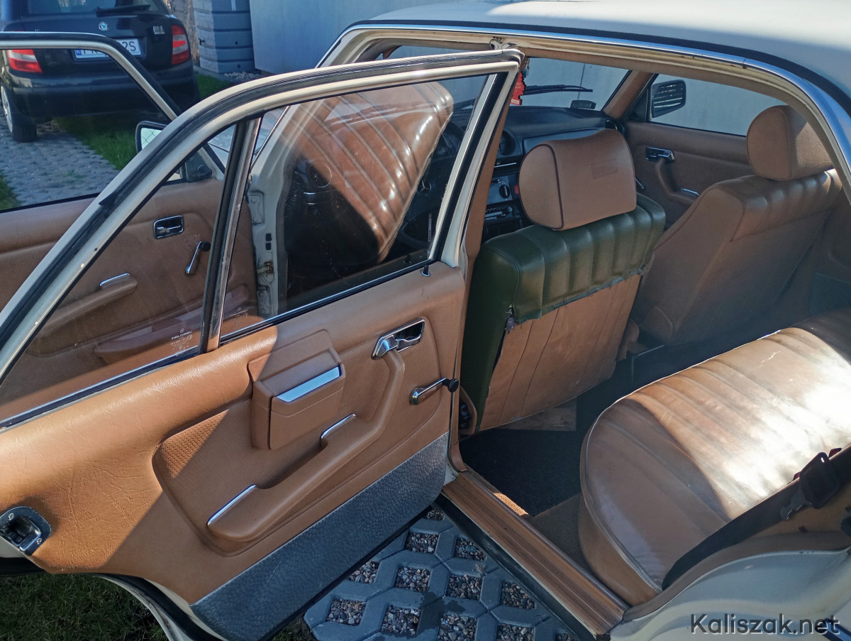 Mercedes W123 1981r. w wersji taxi, kolor light ivory- „Budyń". Auto jest sprawne, opłacone OC i PT. Na wyposażeniu automatyczna skrzynia biegów, wspomaganie kierownicy, szyberdach manualny. Auto sprowadzone do Polski w 2016r. Bardzo zdrowa baza do renowacji, podłoga i podłużnice w świetnym stanie. Silnik i skrzynia biegów pracują bez zarzutu, ciśnienie oleju w zakresie 2.5-3. Kolor wnętrza Palomino. W zestawie oryginalny zapas Michelin, oryginalny podnośnik, oryginalny przewód przyłączeniowy grzałki silnika, dwa kluczyki. Z wad niewielka dziura w podłodze pod prowadnicą fotela kierowcy powstała prawdopodobnie w wyniku niedrożnego odpływu, poza tym jak na zdjęciach. Auto zarejestrowane na mnie, zimą przechowane w garażu. Cena wyjściowa 20000. Ewentualnie rozważę zamianę na 8-9 osobowego busa, może być z niewielką dopłatą z mojej strony.