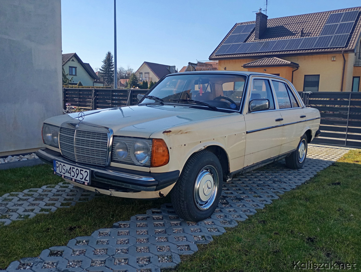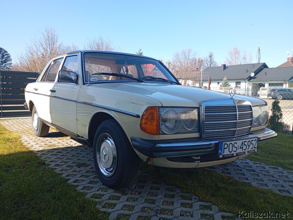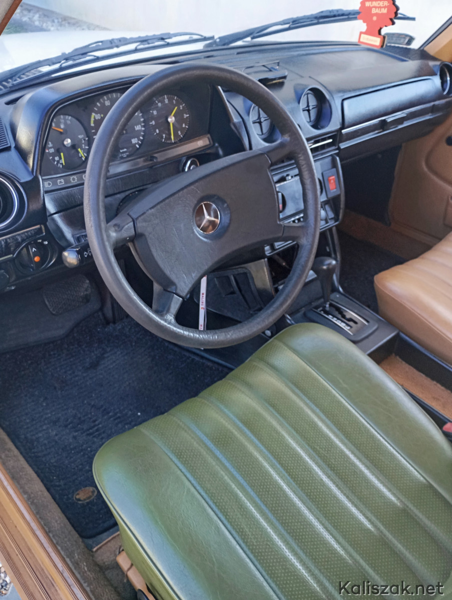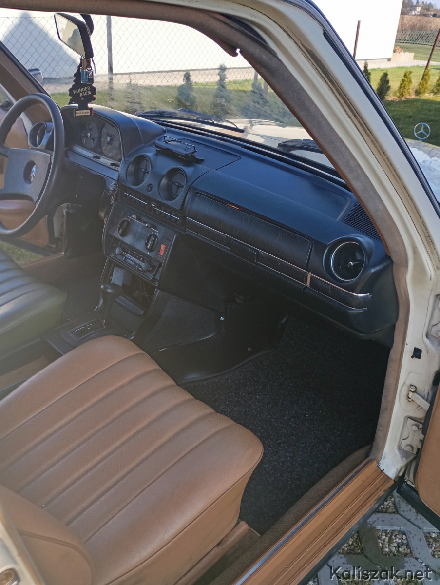 Mercedes W123 1981r. w wersji taxi, kolor light ivory- „Budyń". Auto jest sprawne, opłacone OC i PT. Na wyposażeniu automatyczna skrzynia biegów, wspomaganie kierownicy, szyberdach manualny. Auto sprowadzone do Polski w 2016r. Bardzo zdrowa baza do renowacji, podłoga i podłużnice w świetnym stanie. Silnik i skrzynia biegów pracują bez zarzutu, ciśnienie oleju w zakresie 2.5-3. Kolor wnętrza Palomino. W zestawie oryginalny zapas Michelin, oryginalny podnośnik, oryginalny przewód przyłączeniowy grzałki silnika, dwa kluczyki. Z wad niewielka dziura w podłodze pod prowadnicą fotela kierowcy powstała prawdopodobnie w wyniku niedrożnego odpływu, poza tym jak na zdjęciach. Auto zarejestrowane na mnie, zimą przechowane w garażu. Cena wyjściowa 20000. Ewentualnie rozważę zamianę na 8-9 osobowego busa, może być z niewielką dopłatą z mojej strony.