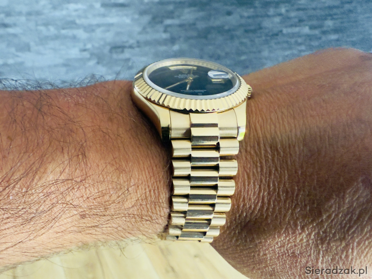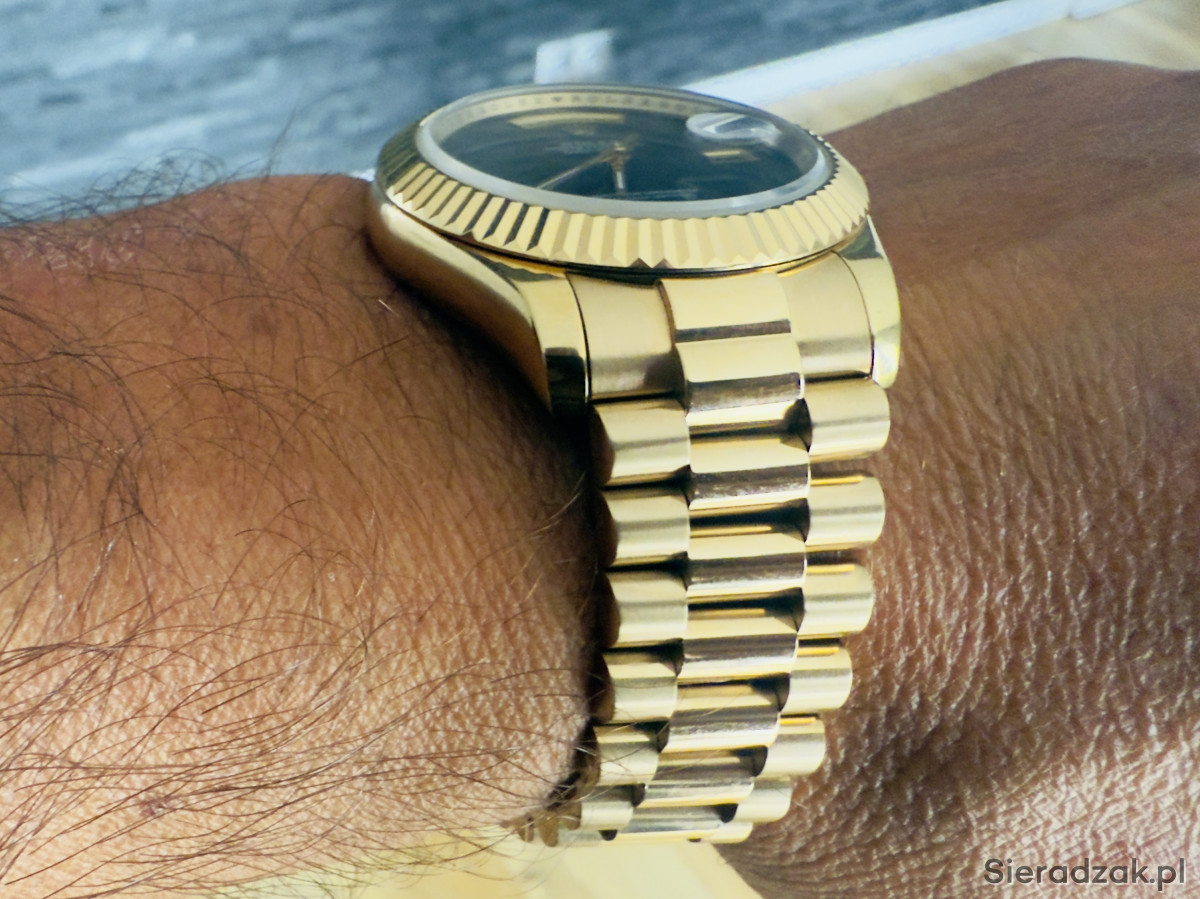 Zegarek posiada rzadką tarcze z onyksu, bransolete prezydencką . Onyx Day-Date to jeden z najbardziej poszukiwanych zegarków z tarcza z kamienia, jakie kiedykolwiek wyprodukowata firma Rolex. Automatic szkło szafirowe , nowy . Bardzo rzadki model trudno dostepny , na żywo prezentuje się niesamowicie sza Zd wola