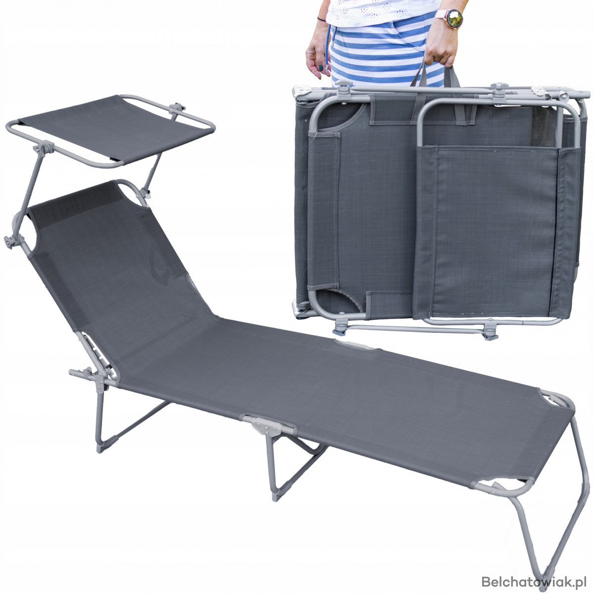 Składany leżak ogrodowy z daszkiem szary stalowy 2124 | Kowalczyk Meble