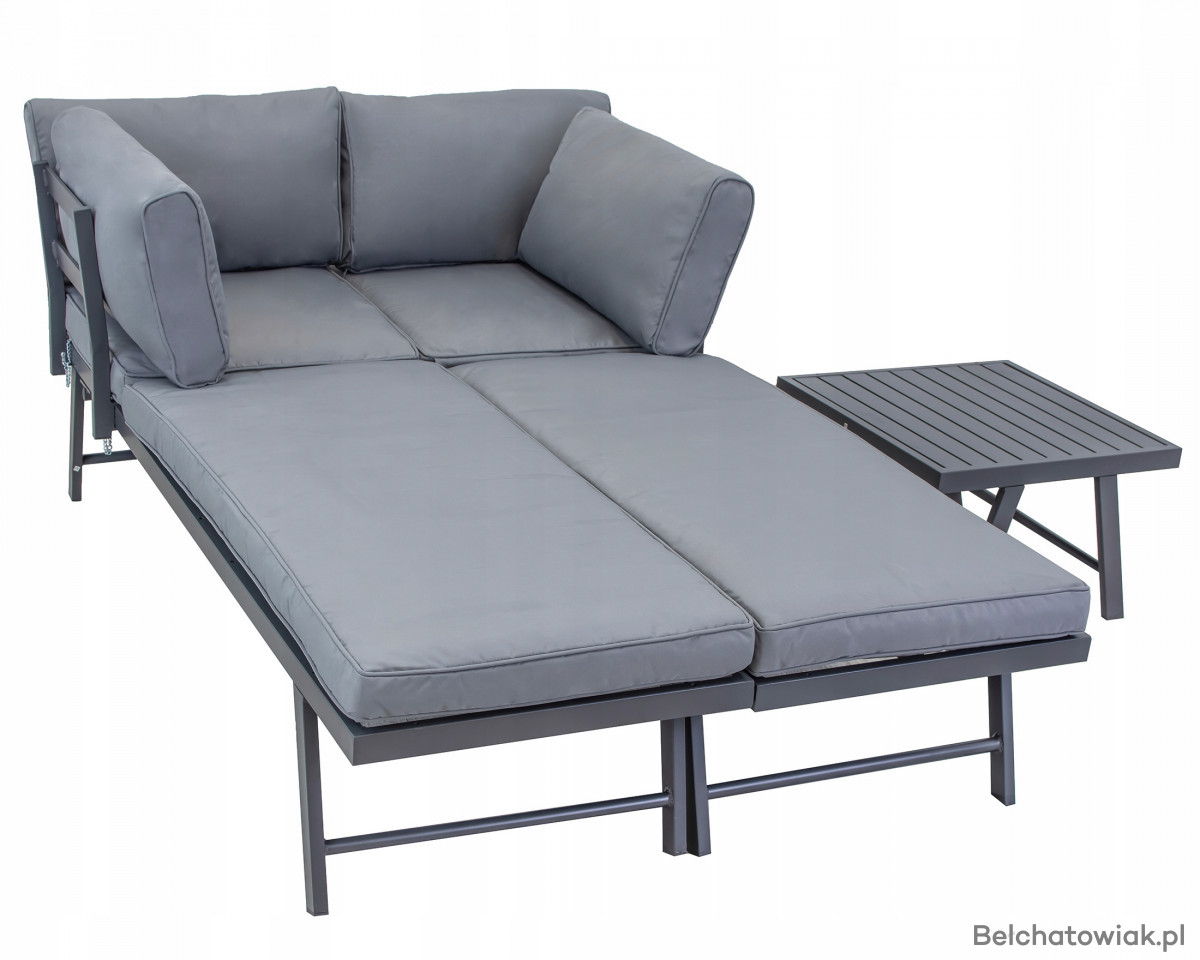 Stylowy i funkcjonalny zestaw mebli ogrodowych, idealny do wypoczynku na tarasie, balkonie lub w ogrodzie. Nowoczesny narożnik z funkcją leżanki i poręczny stolik tworzą wygodną przestrzeń relaksu, idealną na sezon wiosenno-letni.