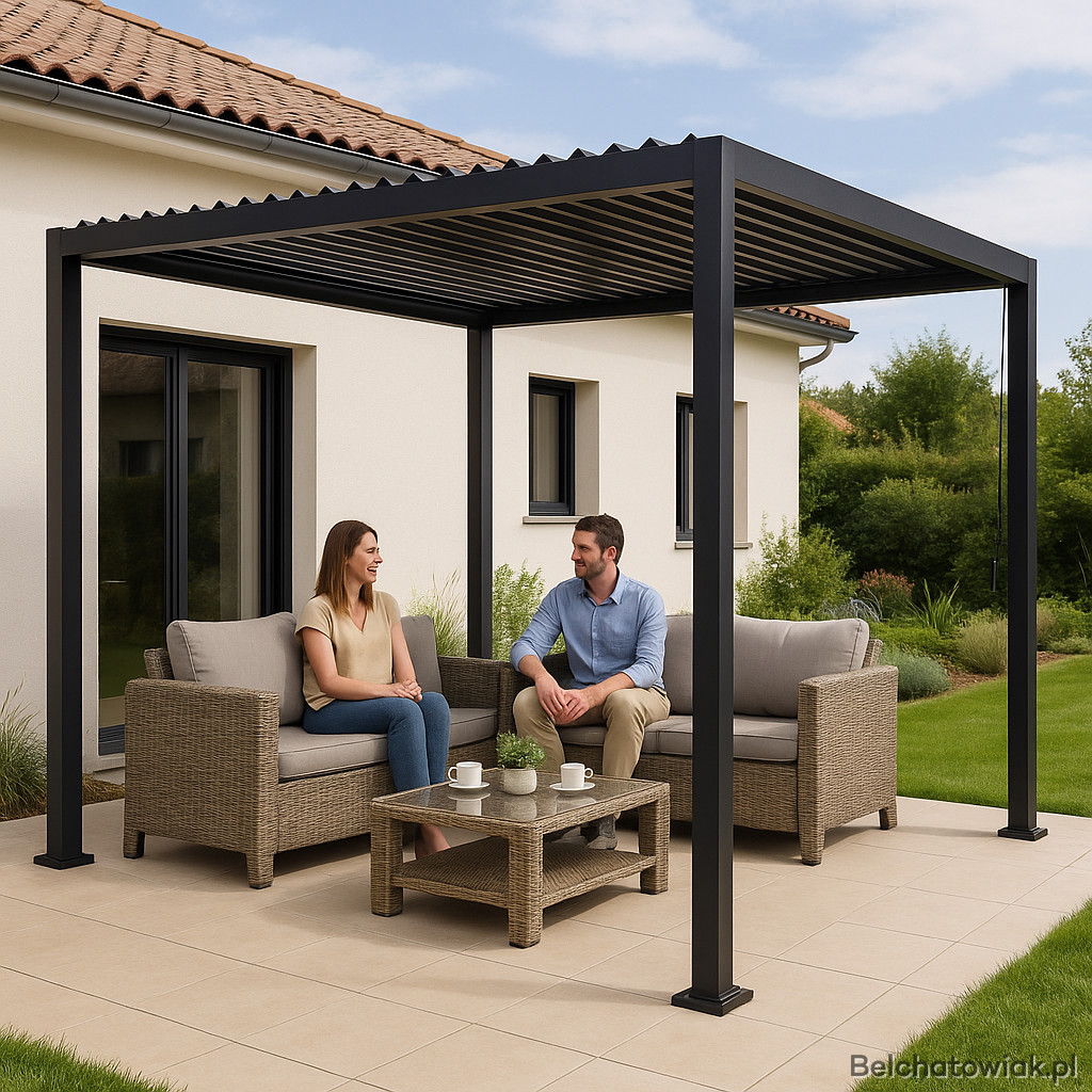 Nowoczesna pergola tarasowa w kolorze antracytowym