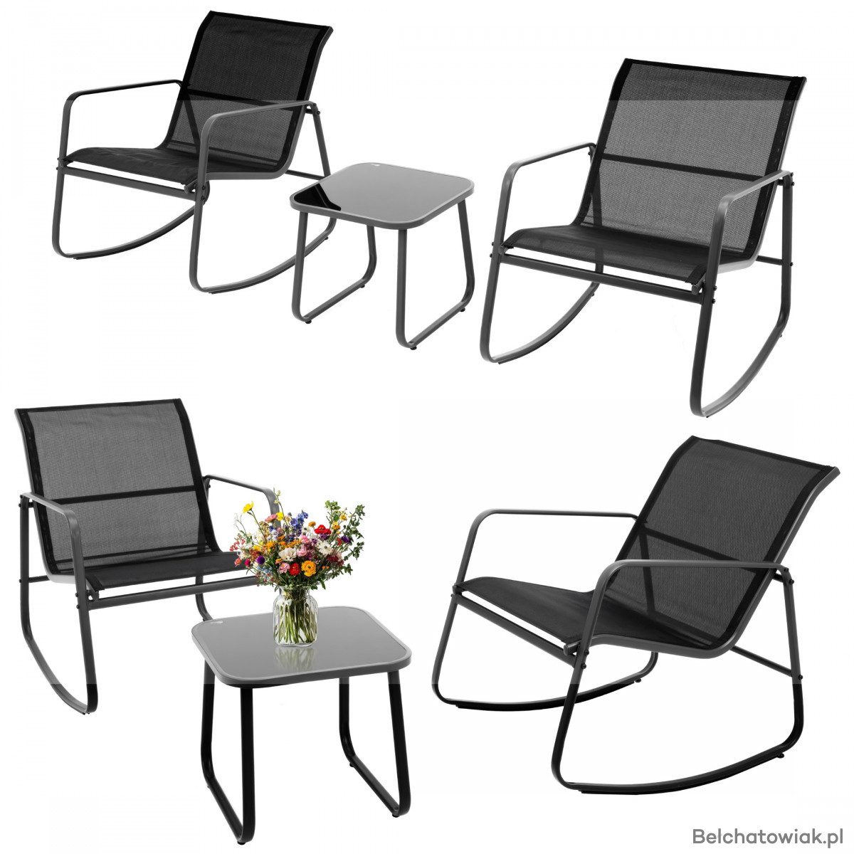 Zestaw mebli ogrodowych z bujanymi fotelami i stolikiem 57860 | Kowalczyk Meble
