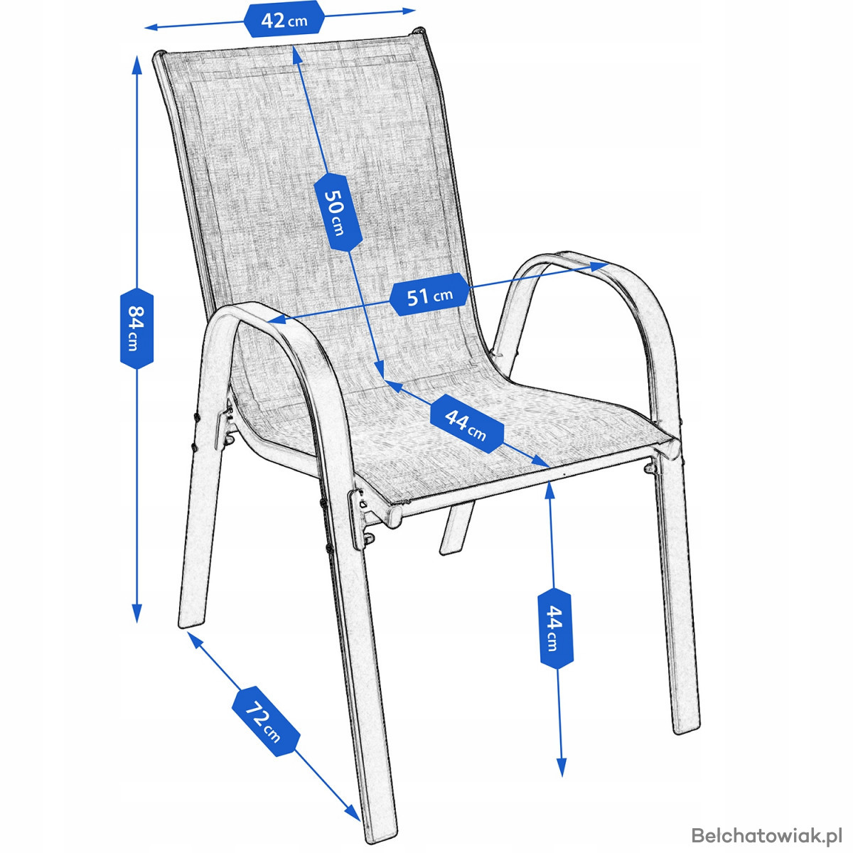 Meble zostały wykonane z odpornej siatki typu textilene, która gwarantuje wygodę użytkowania, dobrą wentylację oraz długą trwałość. Stelaż jest stabilny, a całość przystosowana do użytku zewnętrznego – odporna na działanie promieni UV i zmienną pogodę.