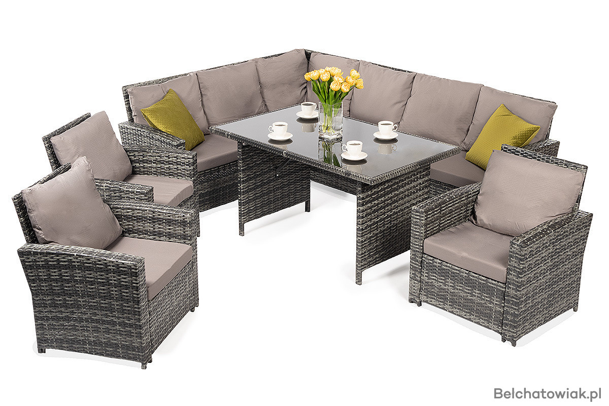 Nowoczesny Zestaw Mebli Ogrodowych TORINO z Technorattanu – 10-osobowy Szary Narożnik