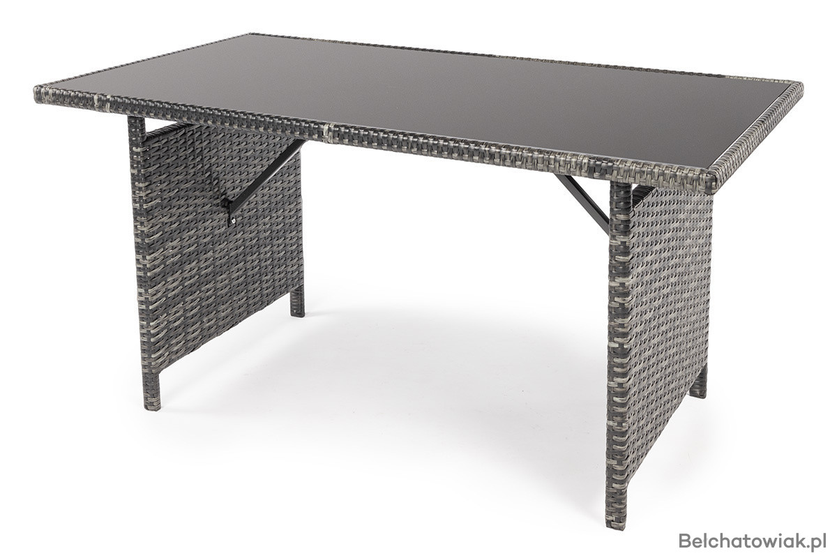 Stół ogrodowy z hartowanym szkłem dopełnia całość, wprowadzając nowoczesny sznyt, który nie traci przy tym na elegancji.