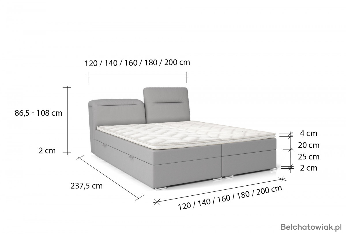 Szerokość: 120 / 140 / 160 / 180 / 200 cm