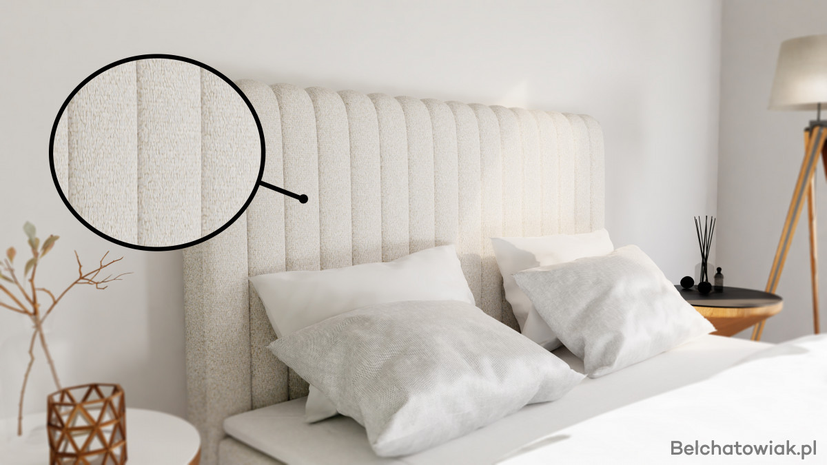 Łóżko kontynentalne SOMNUS wyróżnia się eleganckim zagłowiem, złożonym z osobno tapicerowanych, zaoblonych paneli połączonych ze sobą. To wyjątkowy detal, który harmonijnie komponuje się z różnymi aranżacjami wnętrz, dodając im klasy i charakteru.