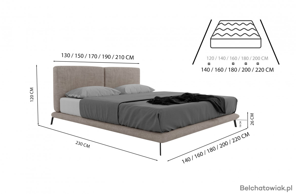 Łóżko DOZE jest kompatybilne z różnymi rodzajami materacy – od piankowych po sprężynowe. Dzięki temu każdy może dopasować poziom komfortu snu do swoich indywidualnych preferencji.