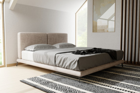 Mimo oszczędnej formy, łóżko DOZE zostało wyposażone w miękki zagłówek, który zwiększa komfort użytkowania. Całość dopełniają stalowe nóżki, nadające meblowi nowoczesny i lekki charakter.