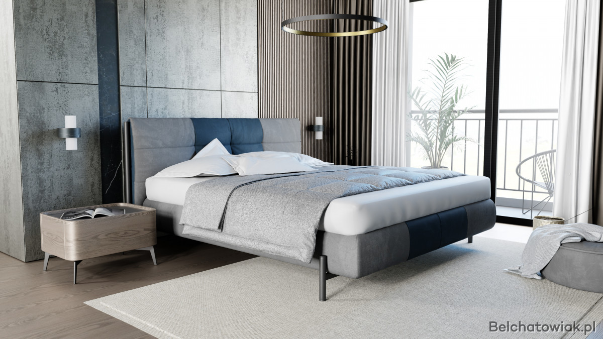 To nowoczesne łóżko do sypialni, które wyróżnia się oryginalnym charakterem i stanowi wyjątkowy element aranżacji wnętrza
