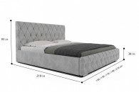 Wyprofilowany zagłówek z ozdobnymi przeszyciami nadaje łóżku luksusowego charakteru. Stylowe nóżki i subtelne zdobienia wprowadzają do wnętrza powiew klasy, a delikatny połysk tkanin podkreśla szykowny wygląd mebla.