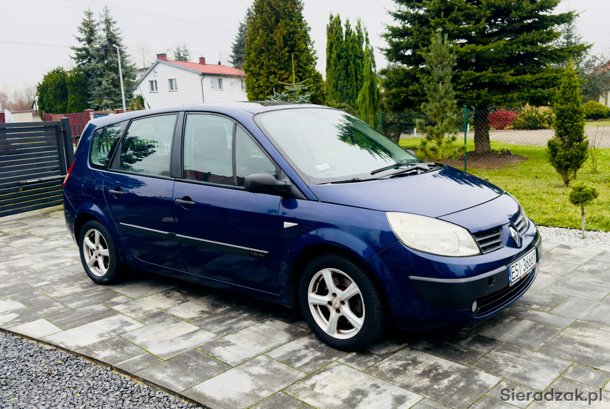 Do sprzedania ładny i zadbany renault grand scenik 1.6 rok 2005 , sprowadzony z Niemiec w 2017r i od tamtej pory użytkowany przez jedną właścicielkę , jest to wersja 7-osobowa , zarejestrowana na 7 osób , lakier bez korozji , spod zdrowy , silnik ładnie pracuje , klimatyzacja sprawna , wnętrze zadbane , hamulce sprawne , rok temu wymienione tarcze hamulcowe i klocki , zawieszenie bez luzów , opony wielosezonowe , wyposażenie ; klimatyzacja , airbag , ABS , wspomaganie kierownicy , elektryczne szyby , elektryczne lusterka , panoramiczny dach , radio , centralny zamek , alufelgi , halogeny , komputer pokładowy , czujnik zmierzchu , czujnik deszczu , 2 karty , dane do sprawdzania w bazie cepik esi36661 vin VF1JM0CDH32733237 data pier rej 18.01.2005