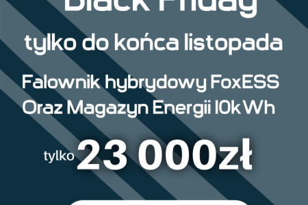 Magazyn Energii z wymianą falownika w ŚWIETNEJ Cenie. Tylko do końca Listopada, w ramach Black Friday zestaw z Falownikiem FoxESS oraz magazynem 10kWh za 23 000zl brutto!